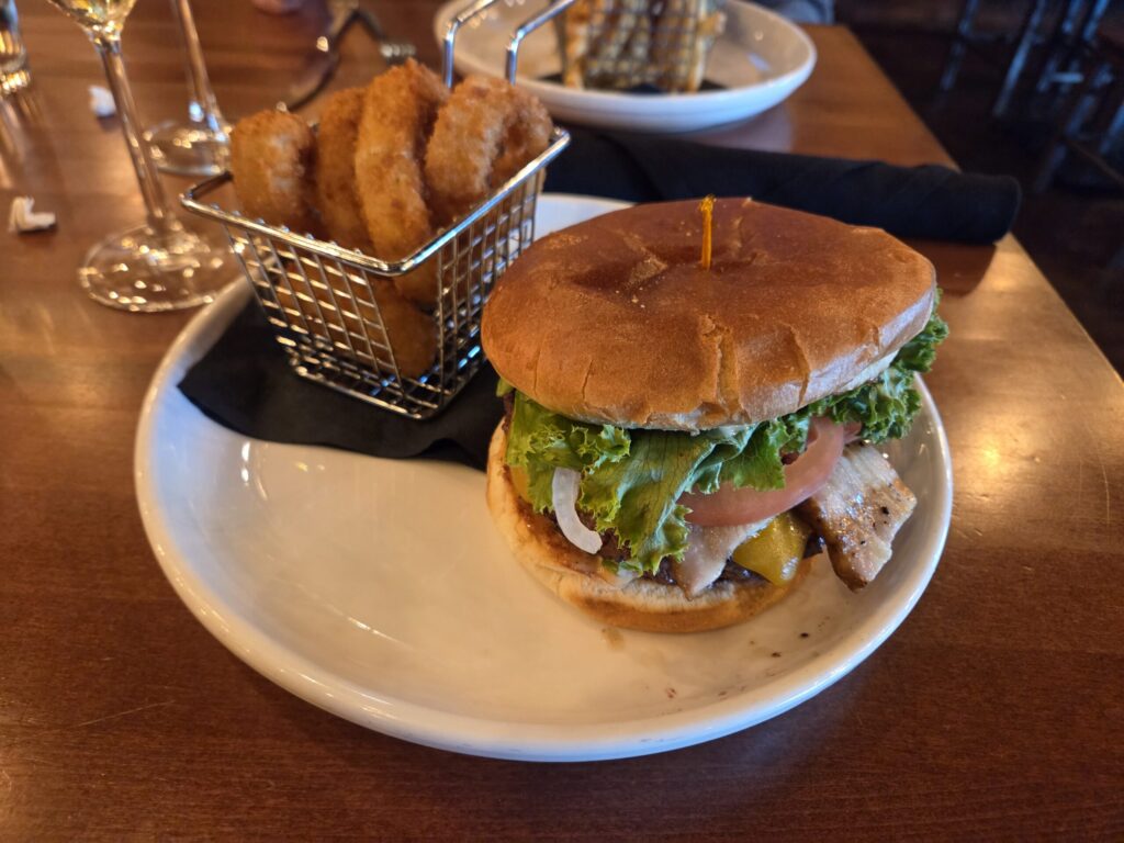 My burger was good, but I’d rather have applewood smoked bacon rather than thick cut pork belly.